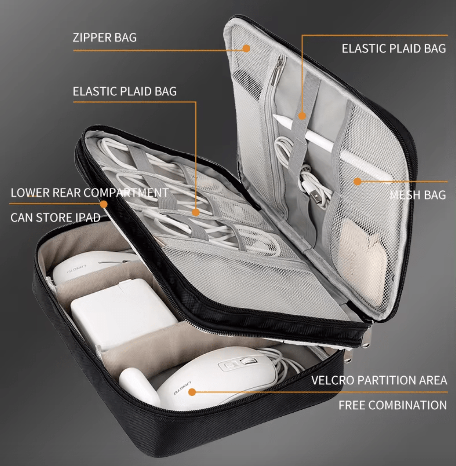 HomeDevice and cable Organizer BagDevice and cable Organizer BagDescription- Device and cable organizer bag- Multiple layers for organization ColorChoose from the list