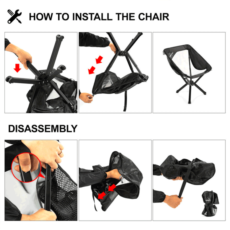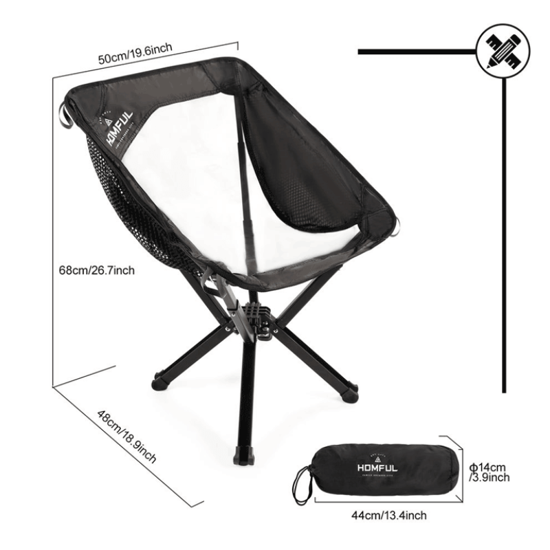 HomeHOMFUL Pocket chairHOMFUL Pocket chairDescriptionPocket chair - HOMFUL brand - Made of aluminium - Easy to fold - Easy to store - Capacity 120 kg - Size (see pictures)